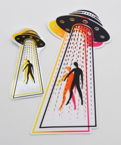 Our Alien Abduction Beam machine cut vinyl stickers are Screen Printed gloss vinyl. Each sticker is unique and no two are exactly the same.