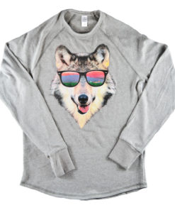 Our Albuquerque Party Lobo is screen printed on a Alternative Apparel Kickback Sweatshirt. This is a light weight, comfy as all heck garment. Great for summer nights and milder temps