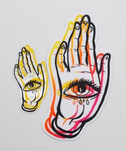 Our All Seeing Hand machine cut vinyl stickers are Screen Printed gloss vinyl. Each sticker is unique and not one is exactly the same.
