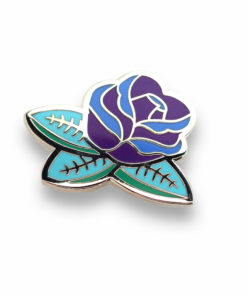 Our Black Rose Enamel Pins have a silver color base with single pin post on the back. Dimensions are 1 3/8″ x 1 1/8″. These handsome pins reflect light from their smooth metal and paint surfaces for a true touch of flare.