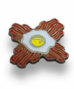 Our Breakfast Zia Enamel Pins have a black color base with two pin posts on the back. Dimensions are 1 3/4″ x 1 3/4″. These handsome pins reflect light from their smooth metal and paint surfaces for a true touch of flare.