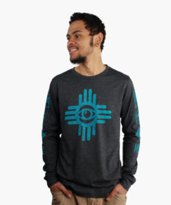 Eye Zia Unisex Long Sleeve is available in two colors and printed on Bella Canvas | DARK GREY HEATHER is 52% combed and ringspun cotton / 48% polyester. RED is 100% combed and ringspun cotton. Sideseam. Ribbed cuffs, Tear-away label. Please see the size charts to ensure a satisfactory fit for your style.