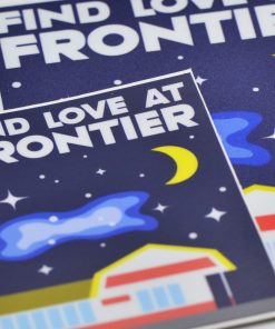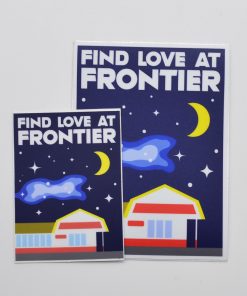 Our FIND LOVE AT FRONTIER stickers are UV and weather resistant “Really Tough Stickers” printed by New Mexico Sticker .Co