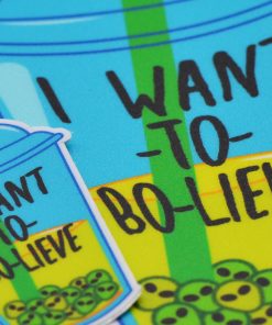 Our I Want to Bo-lieve) stickers are UV and weather resistant “Really Tough Stickers” printed by New Mexico Sticker .Co