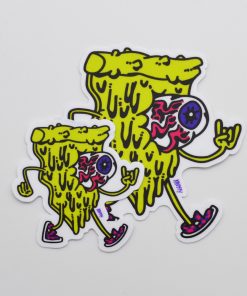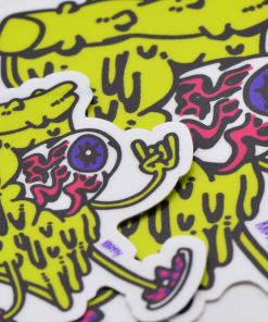 Our Krusty Holographic Eye Pizza machine cut vinyl stickers are outdoor rated and UV resistant. Gloss finish.