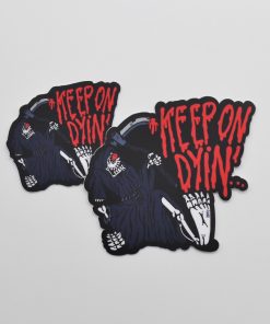 Our Krusty Keep On Dyin’ machine cut vinyl stickers are outdoor rated and UV resistant. Gloss finish.