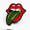 Our red Chile Mouth Enamel Pins have red base under dark red and white accents with two pin posts on the back. Dimensions are 2″ x 1 3/4″.