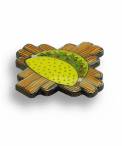 Our Taco Zia Enamel Pins have a black base with two pin posts on the back. Dimensions are 1 1/4″ x 1 1/4″. These handsome pins reflect light from their smooth metal and paint surfaces for a true touch of flare.