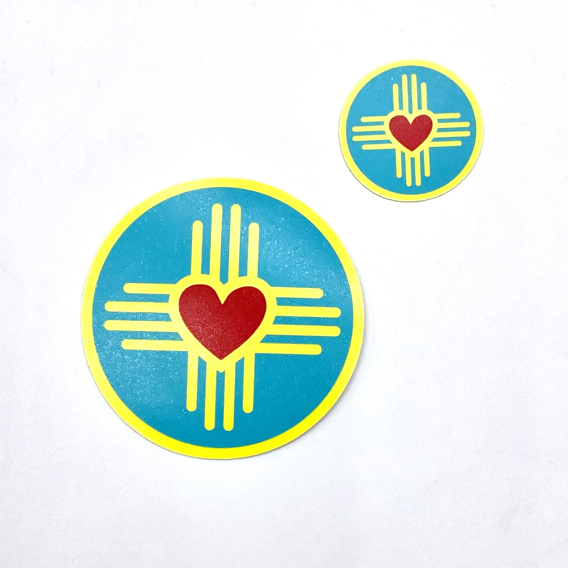 Our machine cut vinyl stickers are outdoor rated and UV resistant. Our Zia Heart Turquoise Circle sticker has a satin finish.